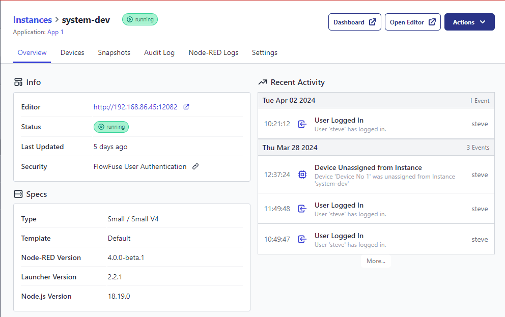 With the recent introduction of the Device audit log, we've now updated the Device Agent to start logging events from the Node-RED instance running on your device.